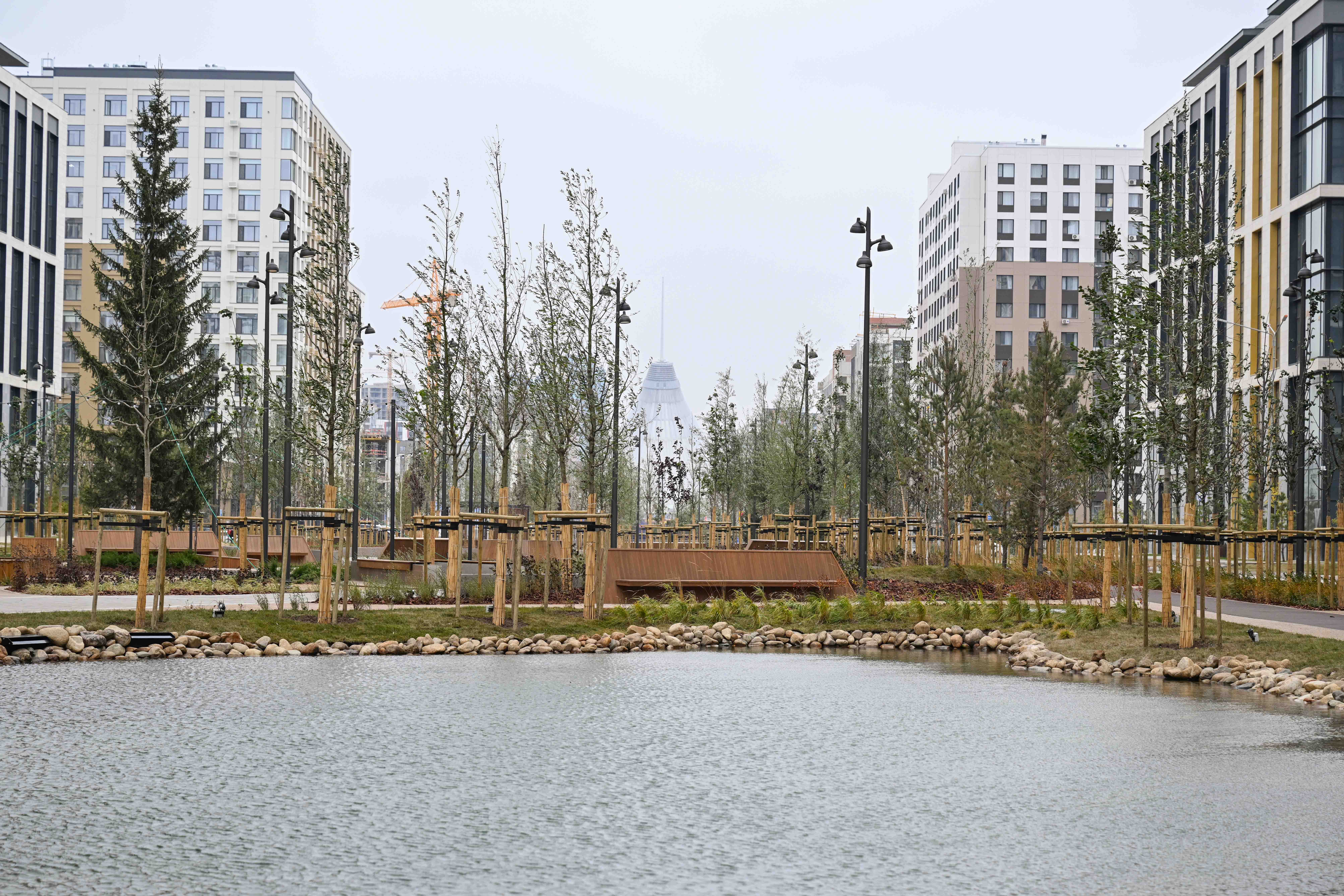 Первый этап работ, охвативший территорию 3,8 гектара, завершен. Проект включает пешеходные и велосипедные дорожки, архитектурные элементы и искусственные пруды.
