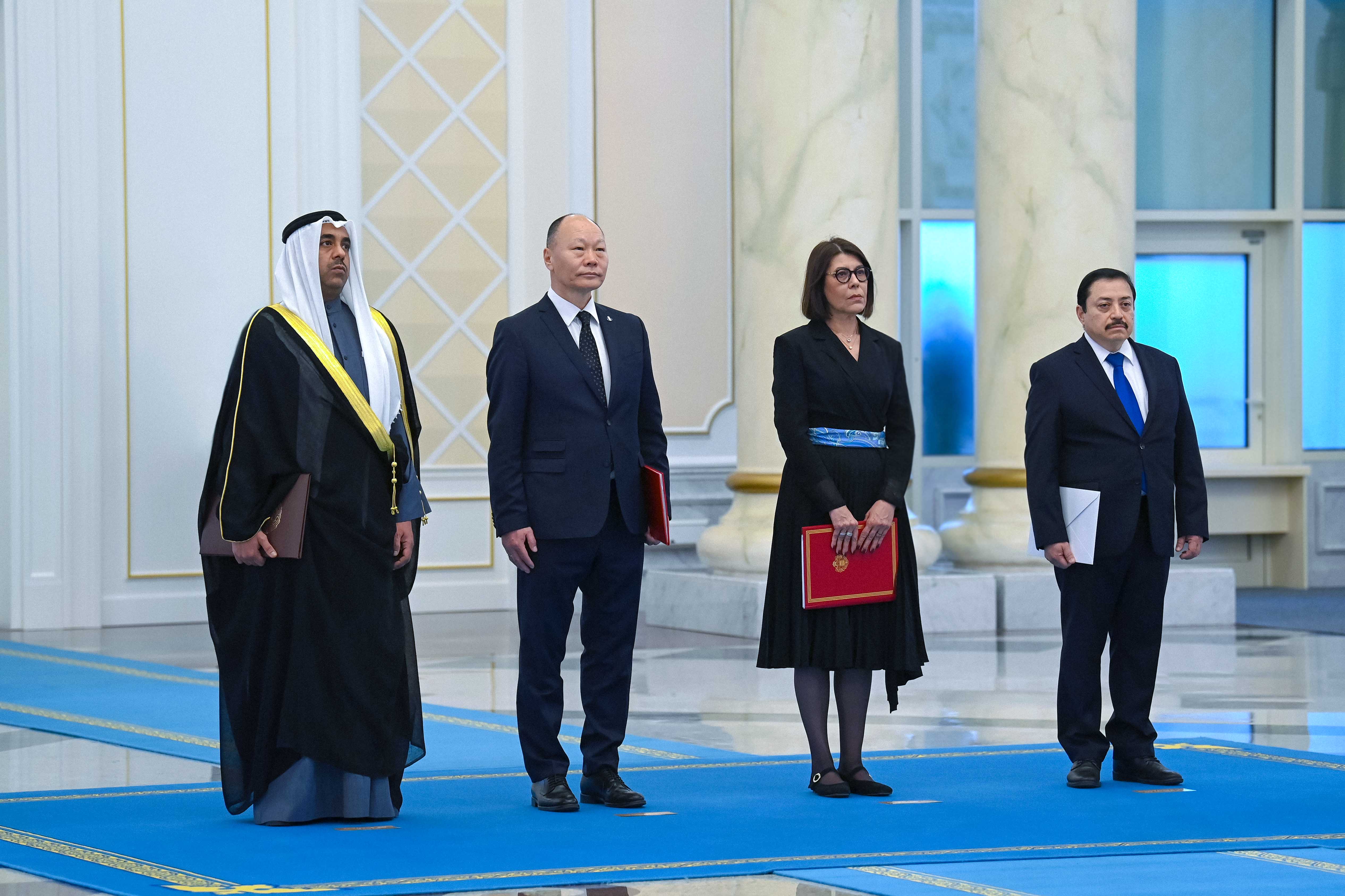 Верительные грамоты вручили посол Государства Кувейт Адель Ахмед Сулайман Аль-Гунайман, посол Монголии Гунаажавын Батжаргал, посол Княжества Монако Мирей Мартини и посол Республики Эль-Сальвадор Юрий Павел Сантакрус Пердемо.